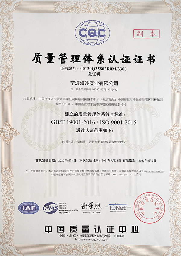 公司已通過ISO9001質(zhì)量管理體系及《安全生產(chǎn)目標(biāo)管理》的相關(guān)認(rèn)證,嚴(yán)格進(jìn)行品質(zhì)管理,采用一系列先進(jìn)設(shè)備對(duì)產(chǎn)品進(jìn)行管控,為客戶提供質(zhì)量穩(wěn)定的合格產(chǎn)品,公司所有產(chǎn)品都已通過GP檢測(cè),其環(huán)保方面均符合國際標(biāo)準(zhǔn)。